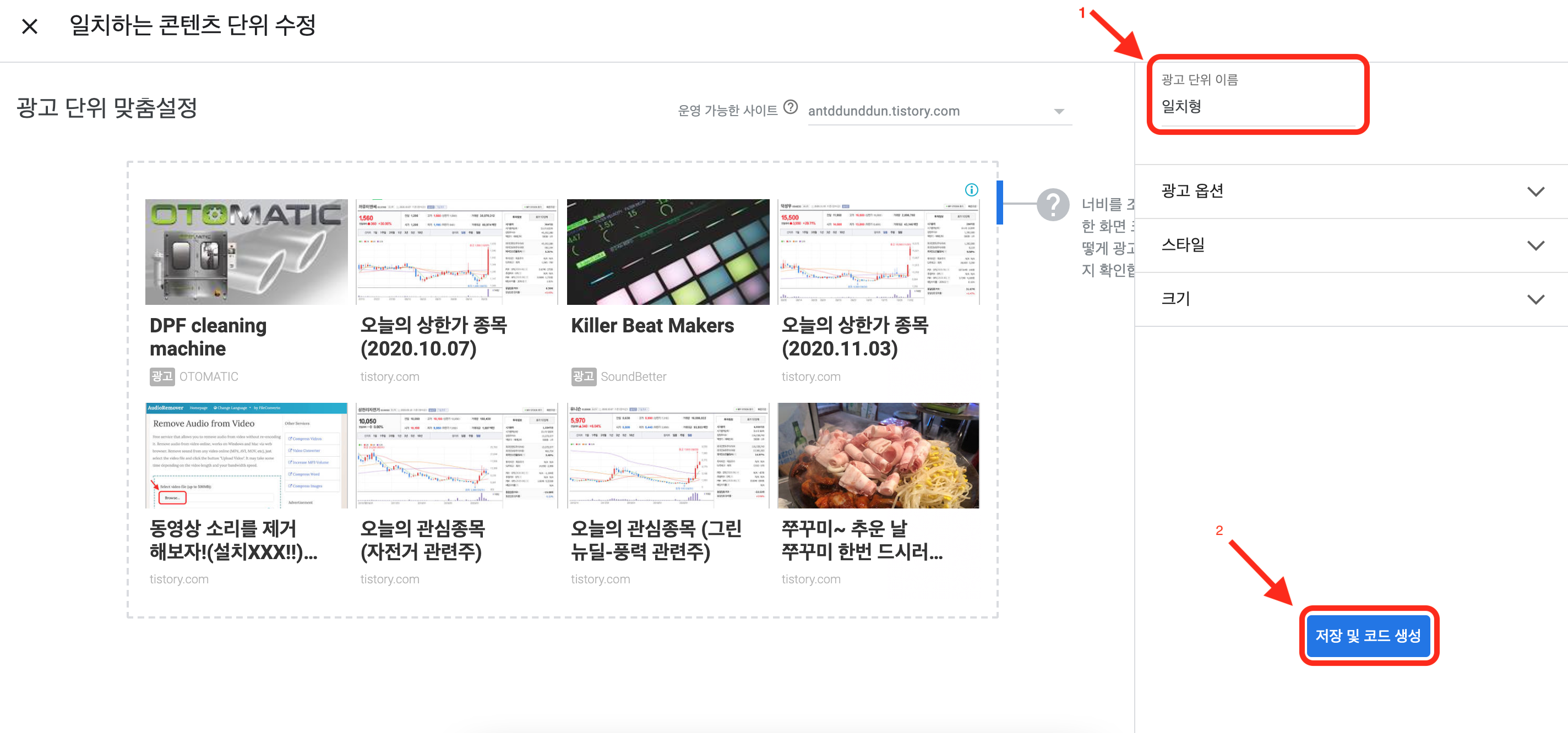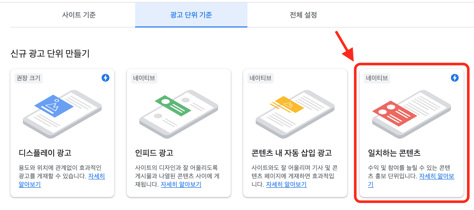 오늘은 저번에 예고한 대로 일치하는 콘텐츠 광고를 넣어보는 방법을 알아보겠습니다.