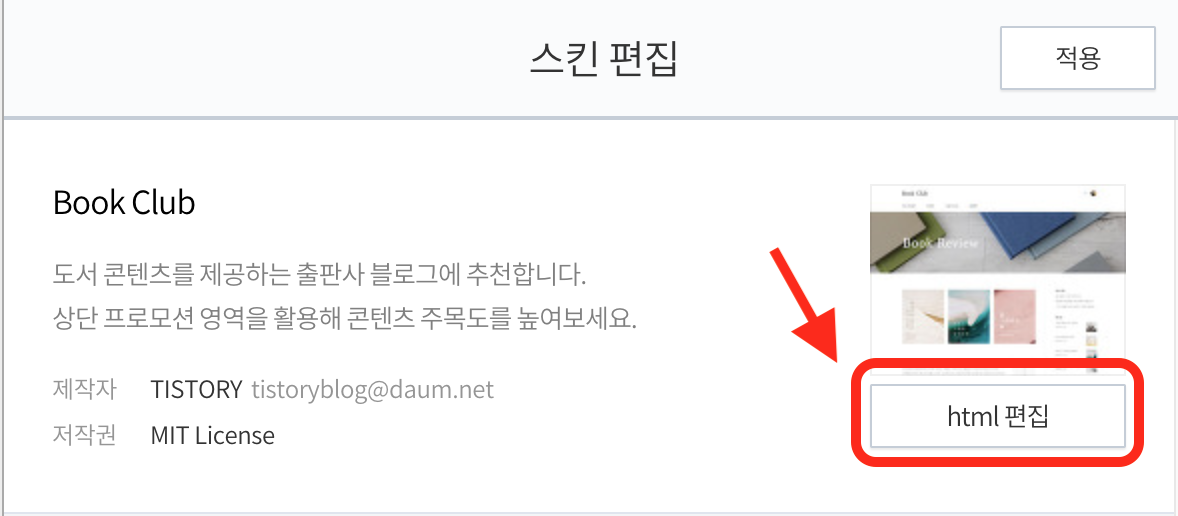 코드를 복사한 뒤, 티스토리 관리 페이지에 와서 꾸미기-> '스킨편집'을 클릭합니다. 이제 익숙하시죠? ㅎㅎ