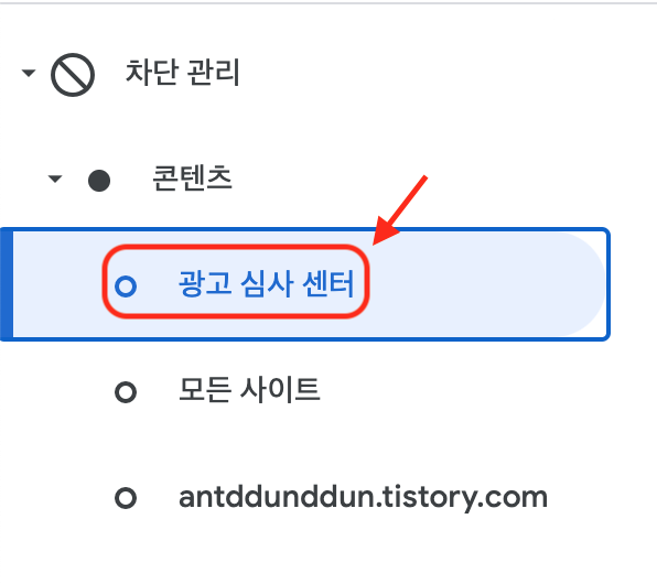 두 번째 방법은 차단 관리->'광고 심사 센터'를 들어가시면 됩니다.