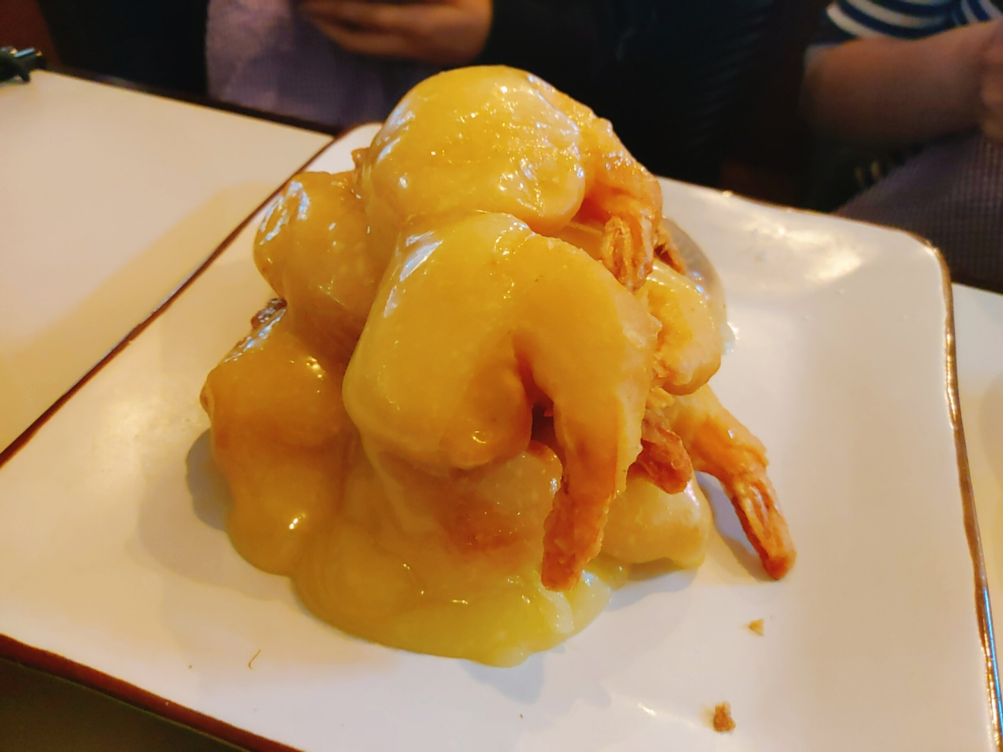 정신없이 먹고 있는데 대망의 꿔바로우와 크림새우가 나옵니다. (기대기대)