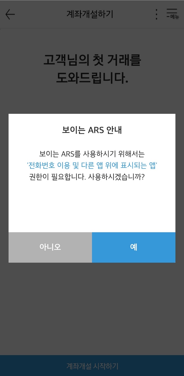 허용을 다 누르셨으면 바로 첫 번째 사진의 창이 떠있을텐데요. 저희는 계좌를 만들어야 하니까, '계좌 만들기'를 눌러주세요!