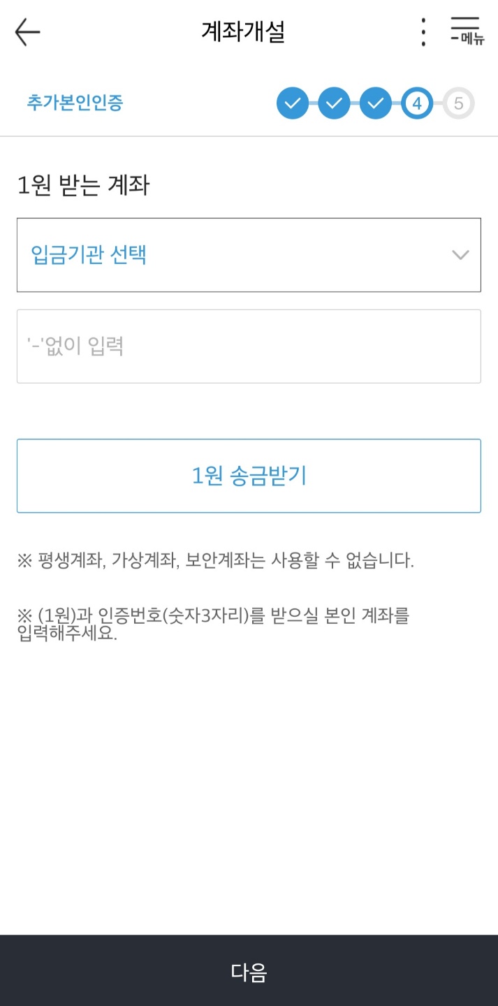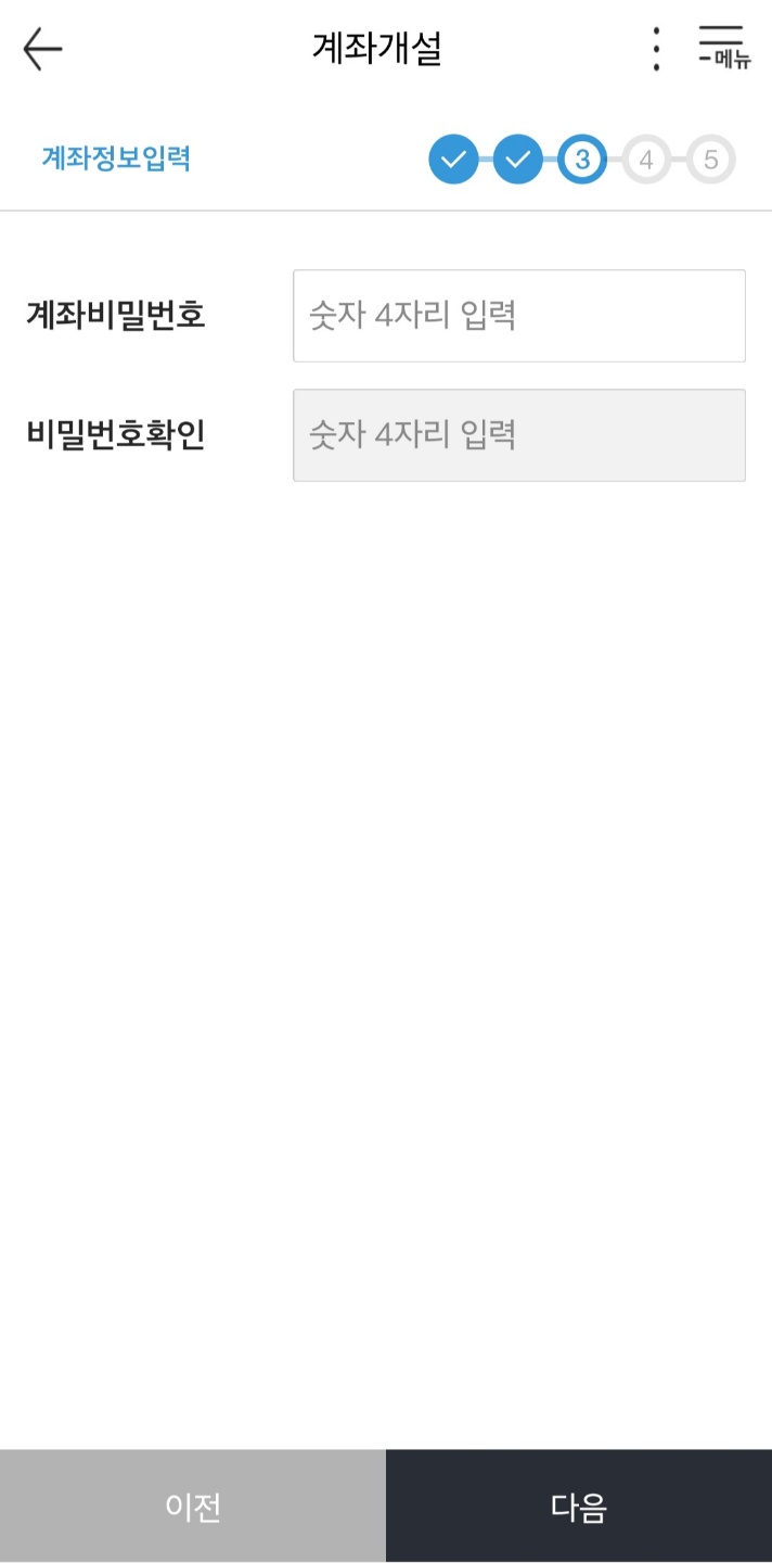 어느덧 반이 지났습니다. 가장 중요한 계좌 비밀번호를 설정하는 시간입니다. 잊어버리시면 안되겠죠? 4자리를 입력해줍니다.