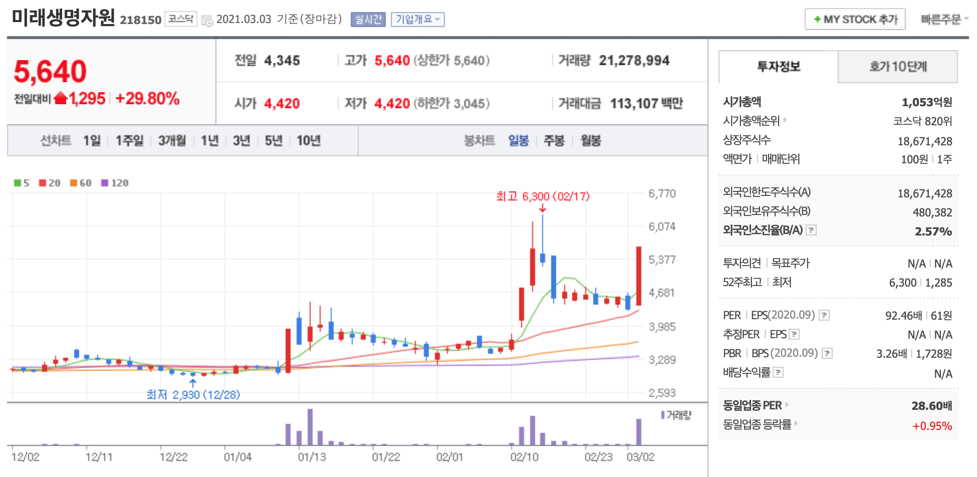 앞서 KTH, 동방 등 쿠팡과 협력 관계가 있는 주식 주가가 크게 올랐다. 이내 차익 실현 매물이 나오면서 다시 내려온 상태다. 그 같은 경험이 있는 투자자들이 새로운 쿠팡 테마주인 미래생명자원에 몰린 것으로 해석된다.
