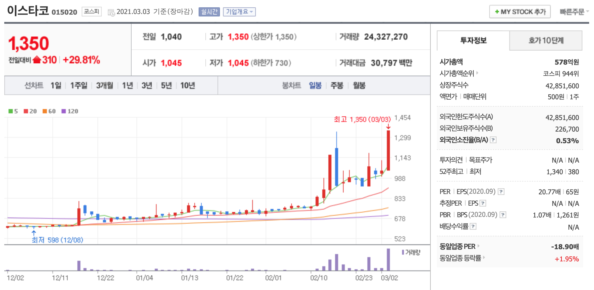 이스타코 상한가 '이재명 기본주택 발언에 화제' 부동산 관련주