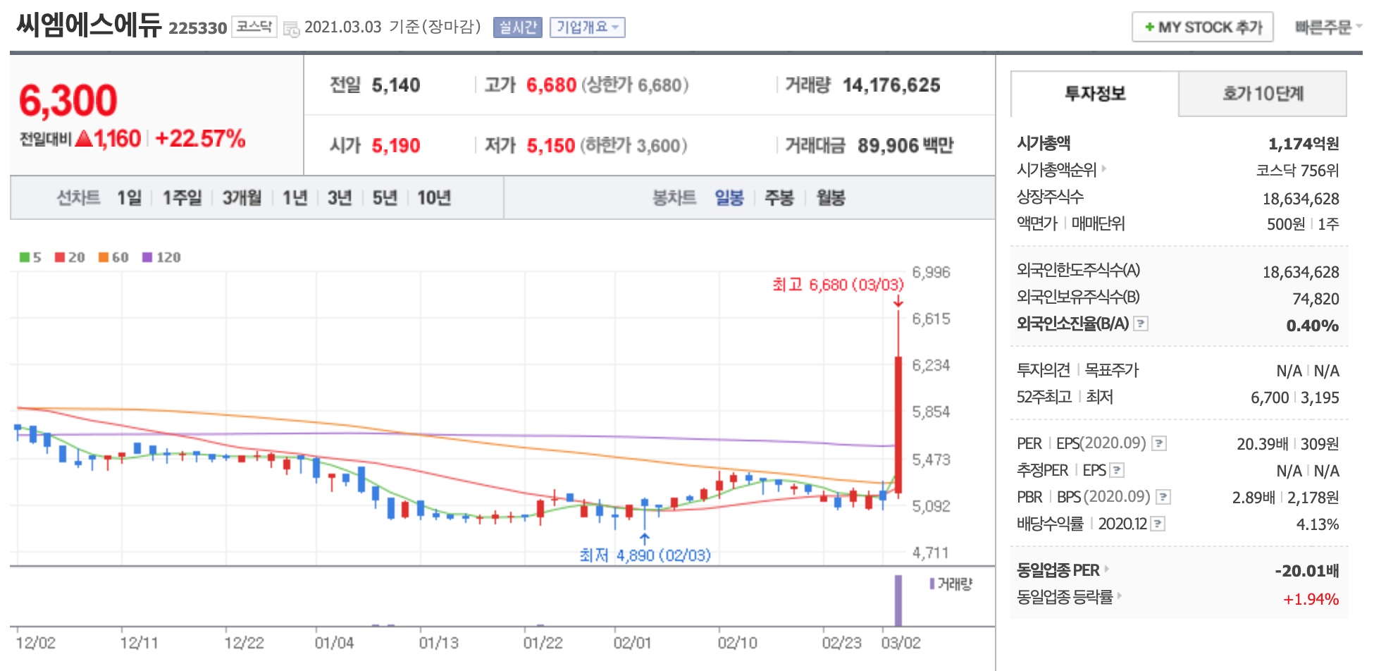 상한가 종목과 관련기사입니다. 🐜🐜출처 - 네이버 증권