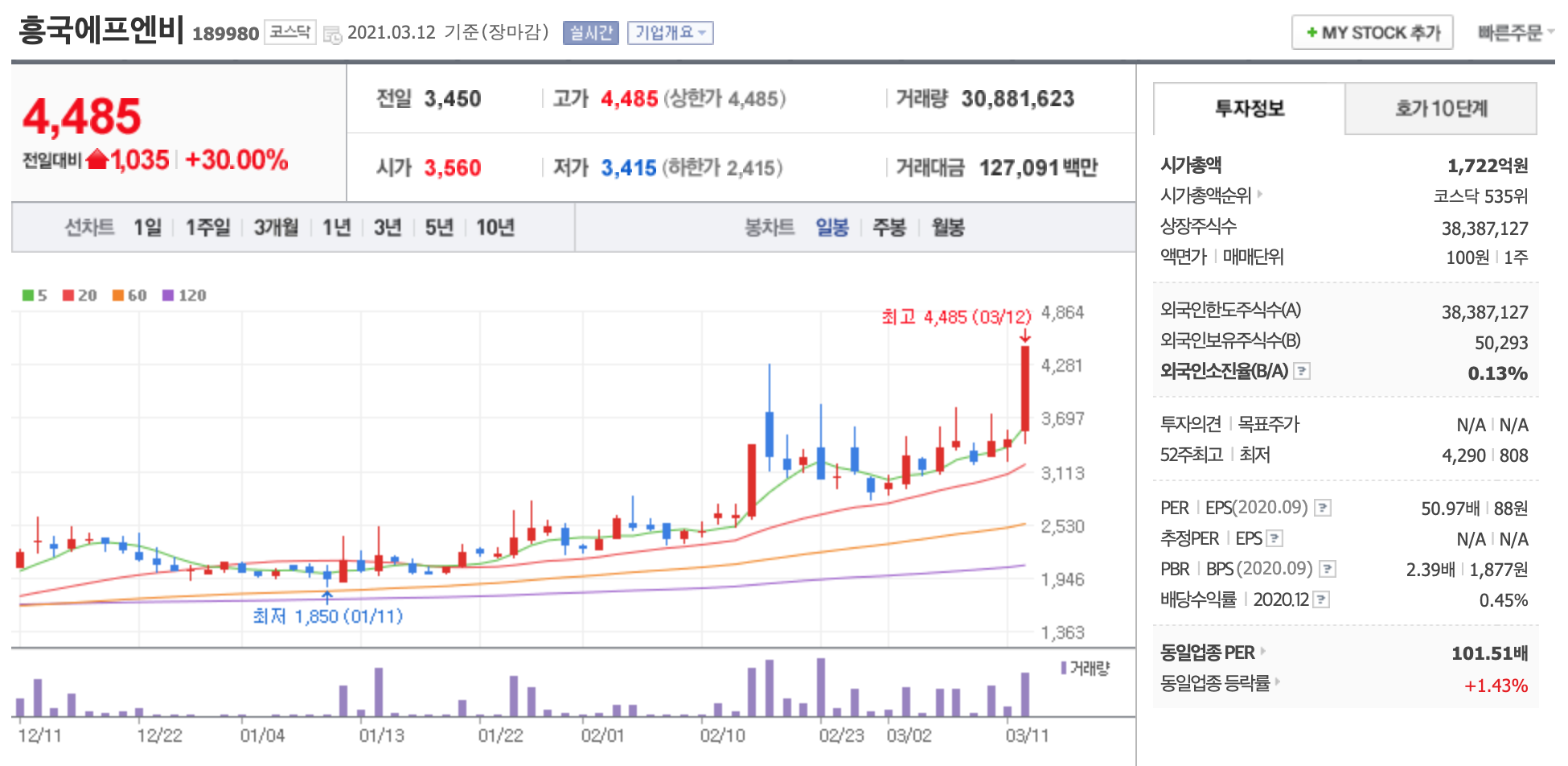 흥국에프엔비, 제2의 쿠팡? 마켓컬리 뉴욕증시 상장 가능성에 +30%달성