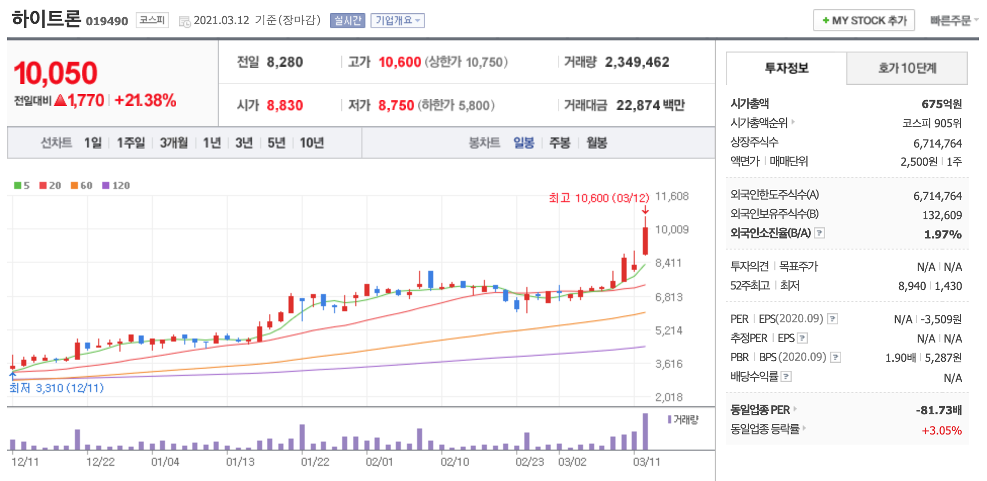 하이트론 주가 왜 올라?…'안철수' 테마주