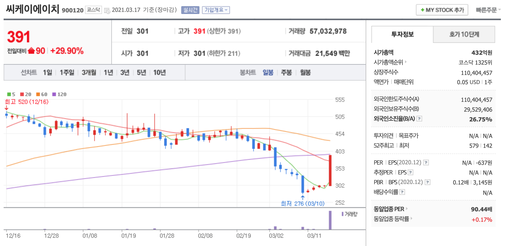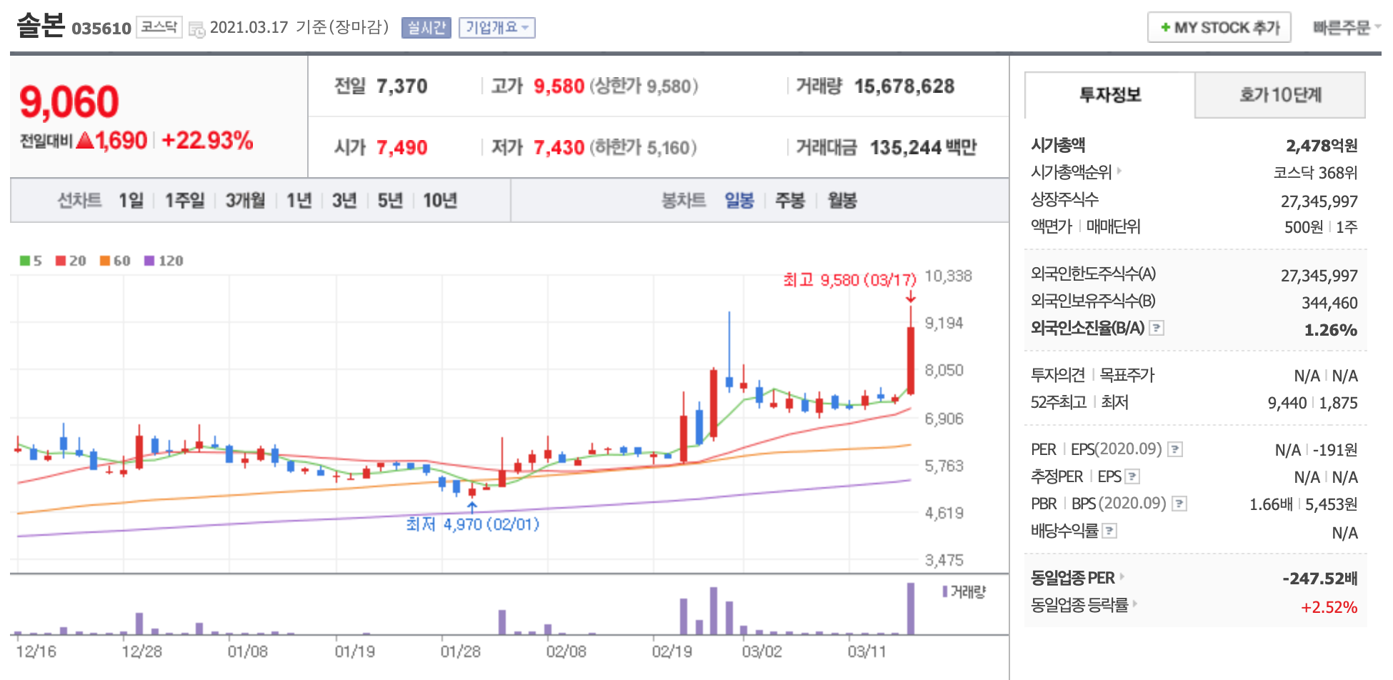 상한가 종목과 관련기사입니다. 🐜🐜출처 - 네이버 증권