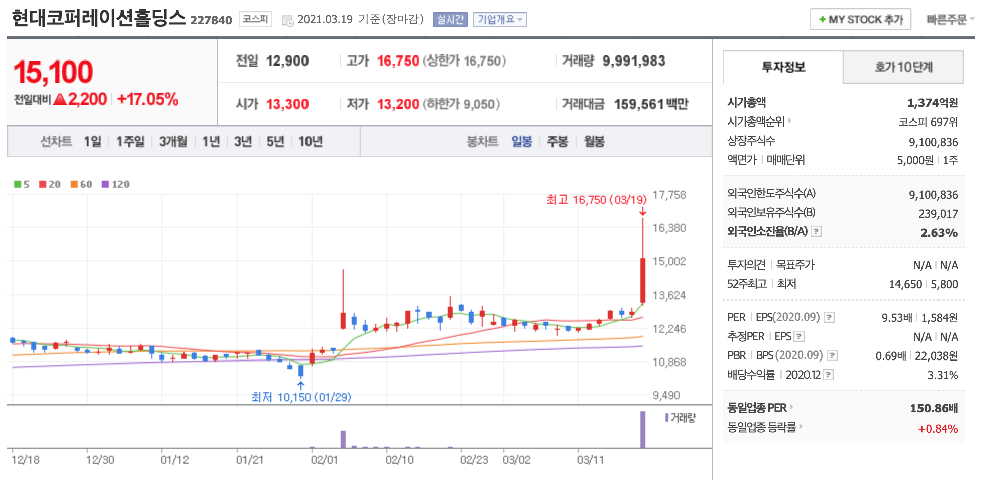 현대코퍼레이션홀딩스의 주가가 강세다.