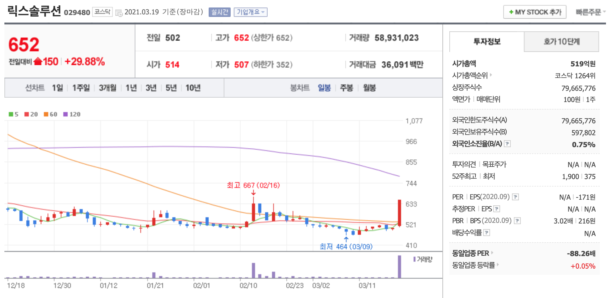 상한가 종목과 관련기사입니다. 🐜🐜출처 - 네이버 증권
