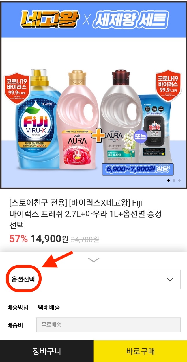 저는 섬유유연제가 필요해서 추가 옵션으로 바이럭스 섬유유연제를 선택했습니다. ㅎㅎ
