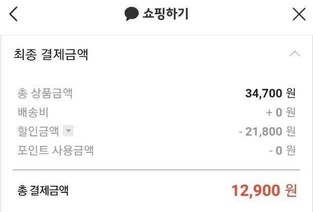 여러분들은 34,700원이... -> 12,900원이 되는 마법을 보고 계십니다. ㅎㅎ👏🏻👍🏻