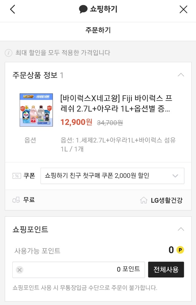 그럼 쿠폰도 받았겠다.. 바로 이어서 구매를 해봅니다.