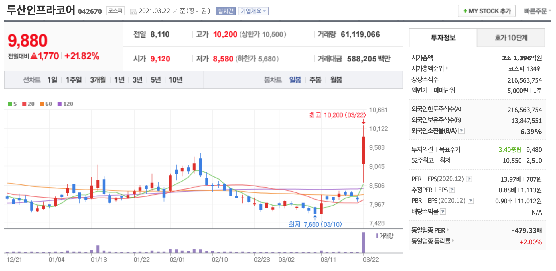 두산인프라코어가 분할·합병 소식에 주가가 급등했다.