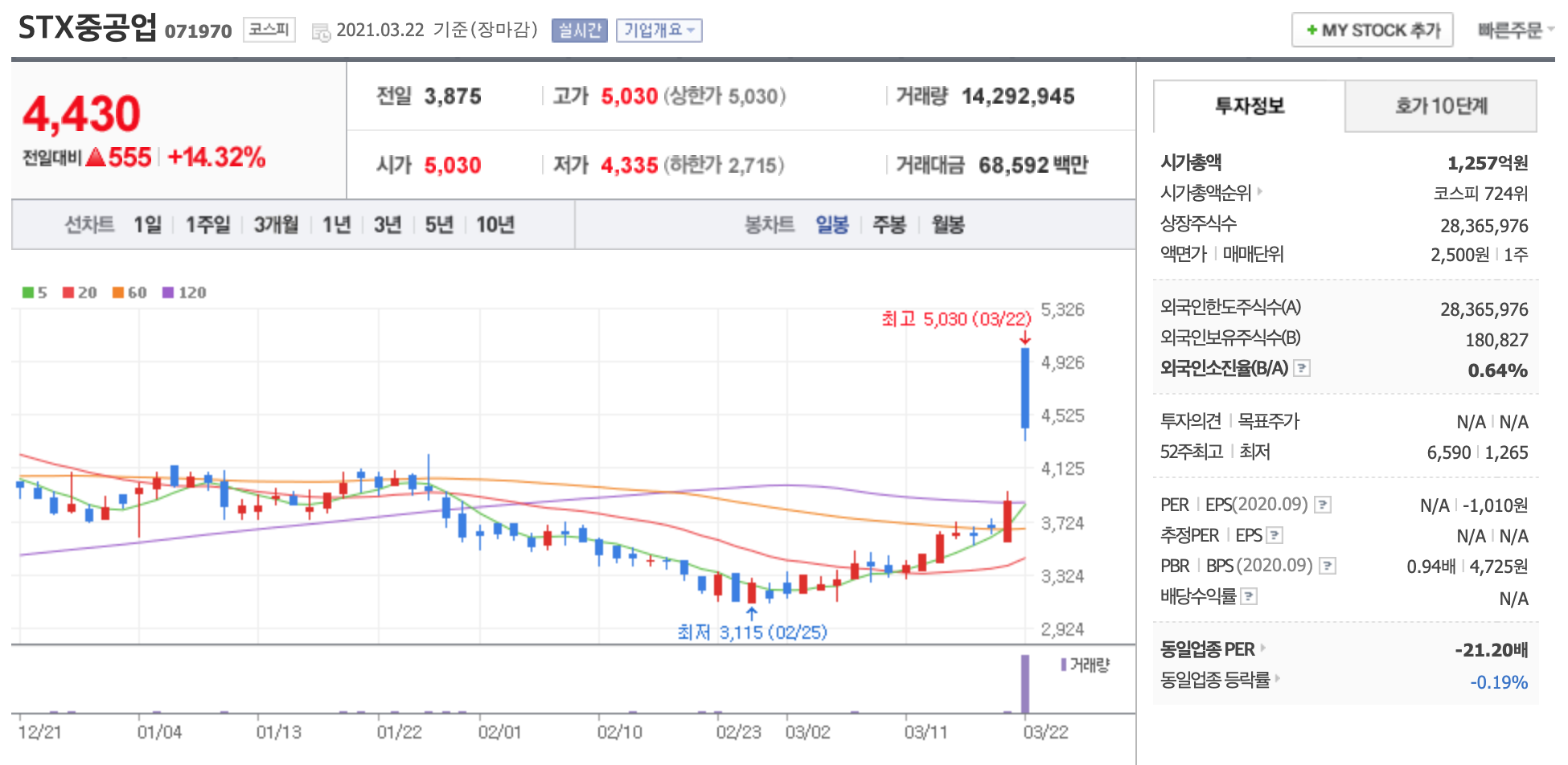 STX중공업이 분할·합병 소식에 주가가 급등했다.