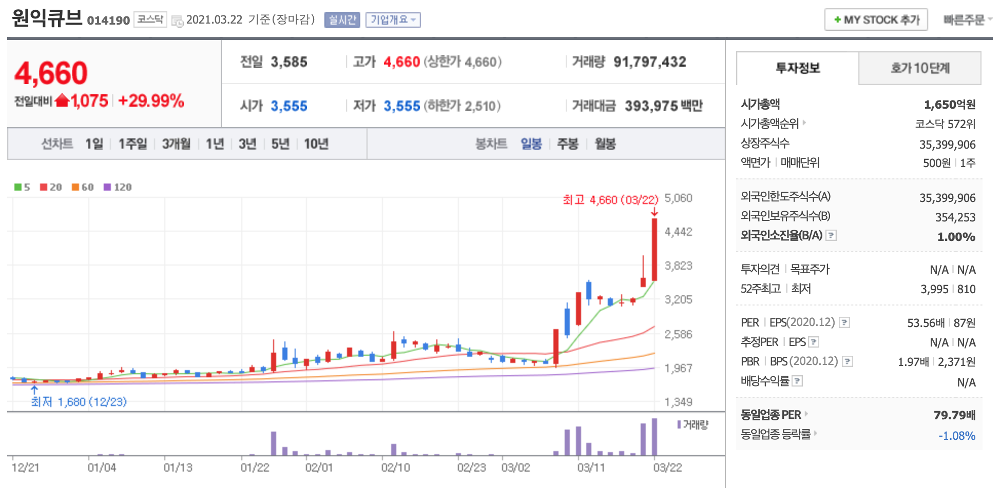 원익큐브 "윤석열과 아무 관련 없다는데..." 주가는 '상한가'??