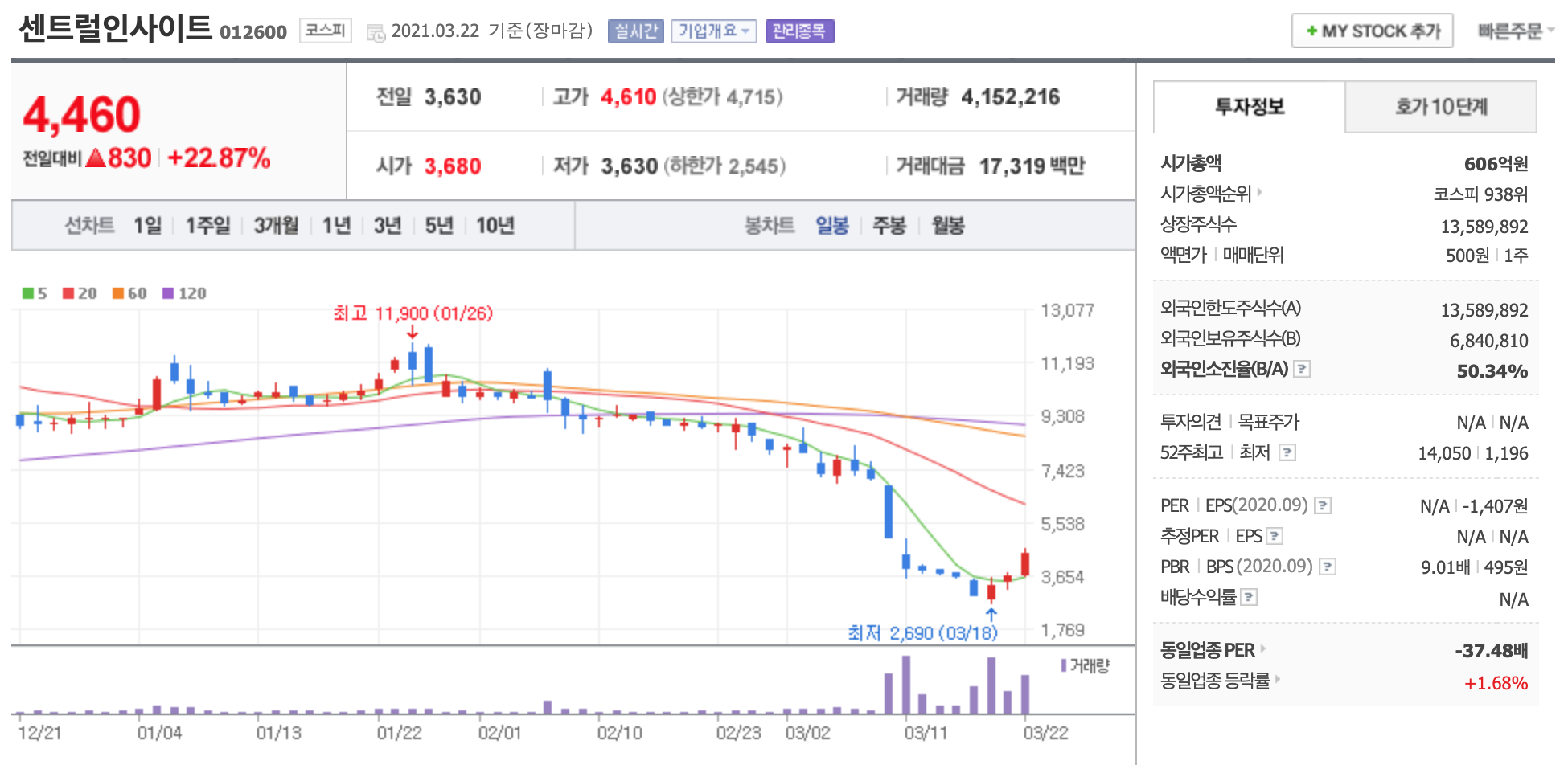 센트럴인사이트는 최근 윤사모(윤석열을 사랑하는 모임) 회장을 맡고 있는 홍경표 교수를 고문으로 영입하면서 테마주가 됐다.