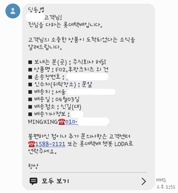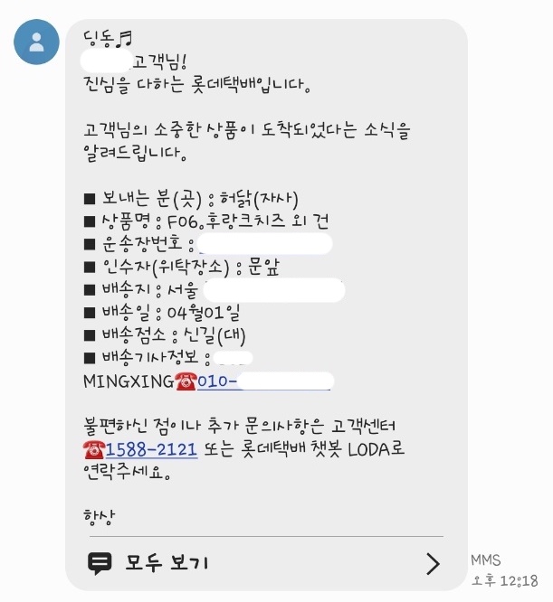다시 한번.. 상품이 도착했다는 문자 알람이 울리는 것입니다.