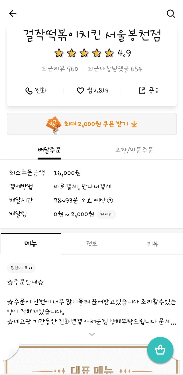 덕분에 더 먹어보고 싶어졌습니다. 오늘은 주문 성공을 못했기에... 음식 사진과 후기는 없습니다. ㅜㅜ