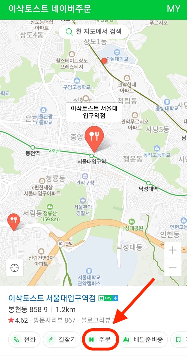 바로 위에 보이는 네이버 주문에 이삭토스트 x 네이버 주문을 눌러줍니다.