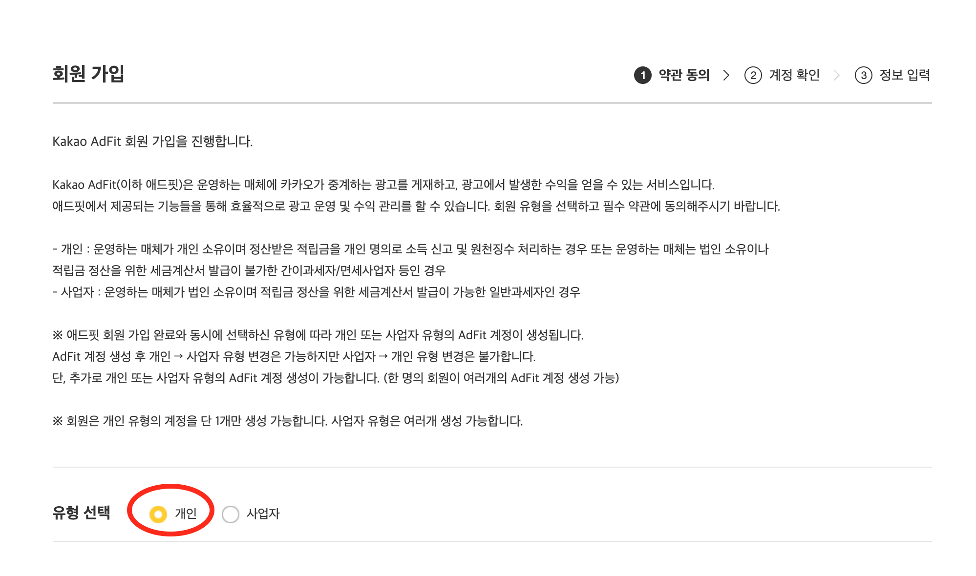 작성을 다 하신 뒤 ' 가입'을 클릭합니다. (티스토리가 업데이트 된 후 지금은 바로 티스토리로 넘어 가신 후 수익으로 들어가서 먼저 심사를 받으셔도 상관 없습니다!!)