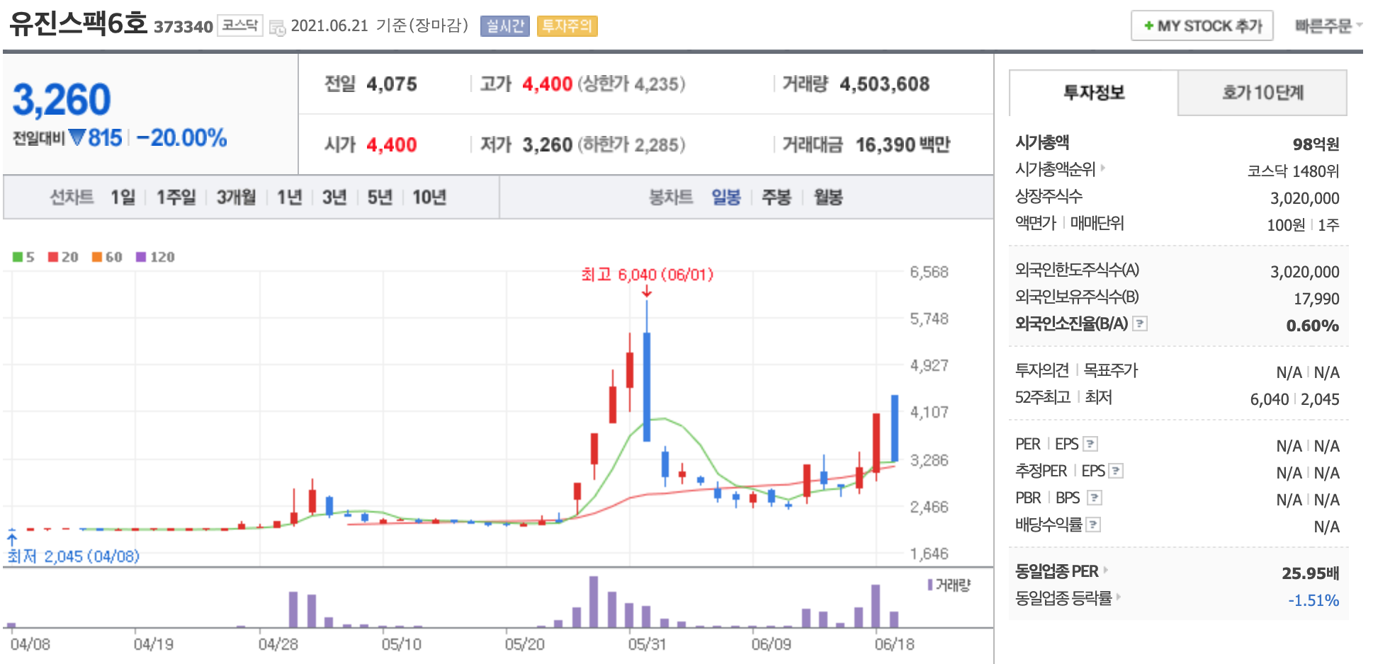 올 4월까지만 해도 공모가인 2000원대 후반에 머물렀지만 지난달 ‘삼성스팩2호와 메타버스 관련 기업인 엔피의 합병 계획’ ‘넷플릭스의 메타버스 구독형 게임 서비스 진출 계획’ 등의 보도가 나오자 상한가를 기록하기 시작했다. 지난 6월 1일엔 투자위험종목으로 지정돼 거래가 정지되기도 했다.