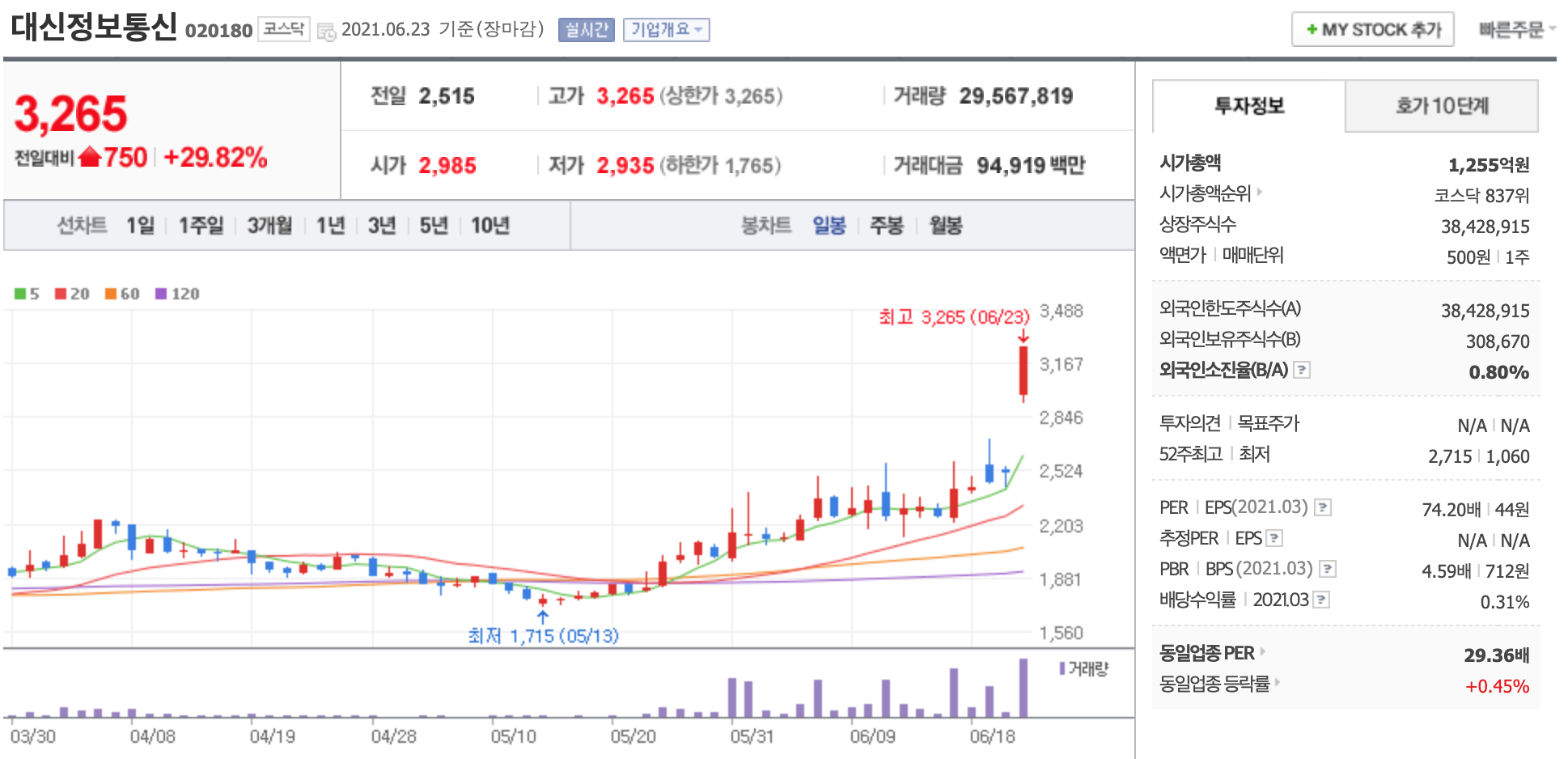 대신정보통신 - 1987년 8월 28일에 설립되었으며 1995년 9월 30일 코스닥시장에 상장함.