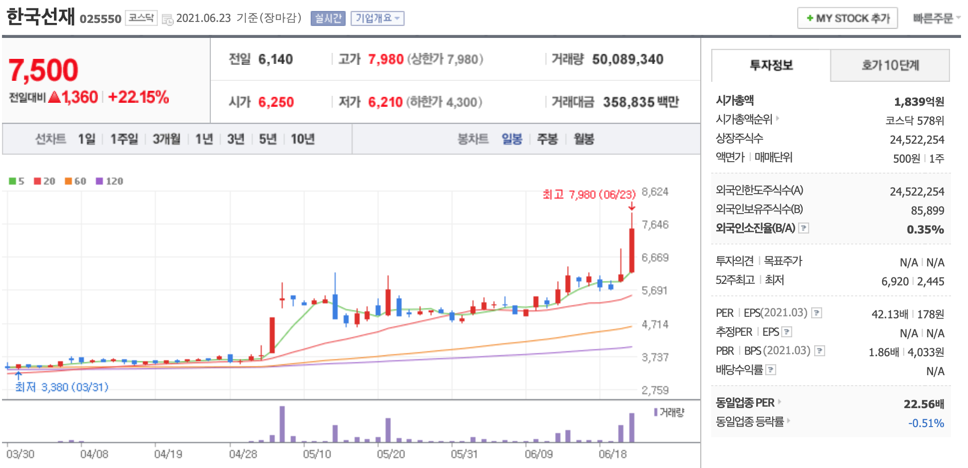 상한가 종목과 관련기사입니다. 🐜🐜출처 - 네이버 증권
