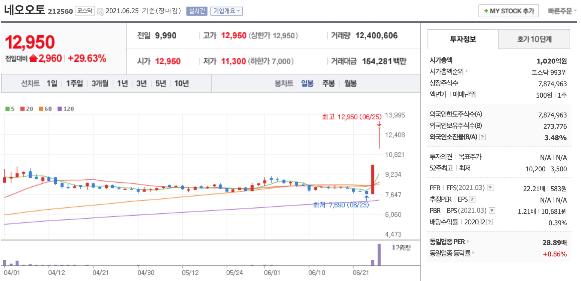 네오오토 주가가 상승세를 보이고 있다. 해당종목은 윤석열 관련 주로 언급된 바 있다.