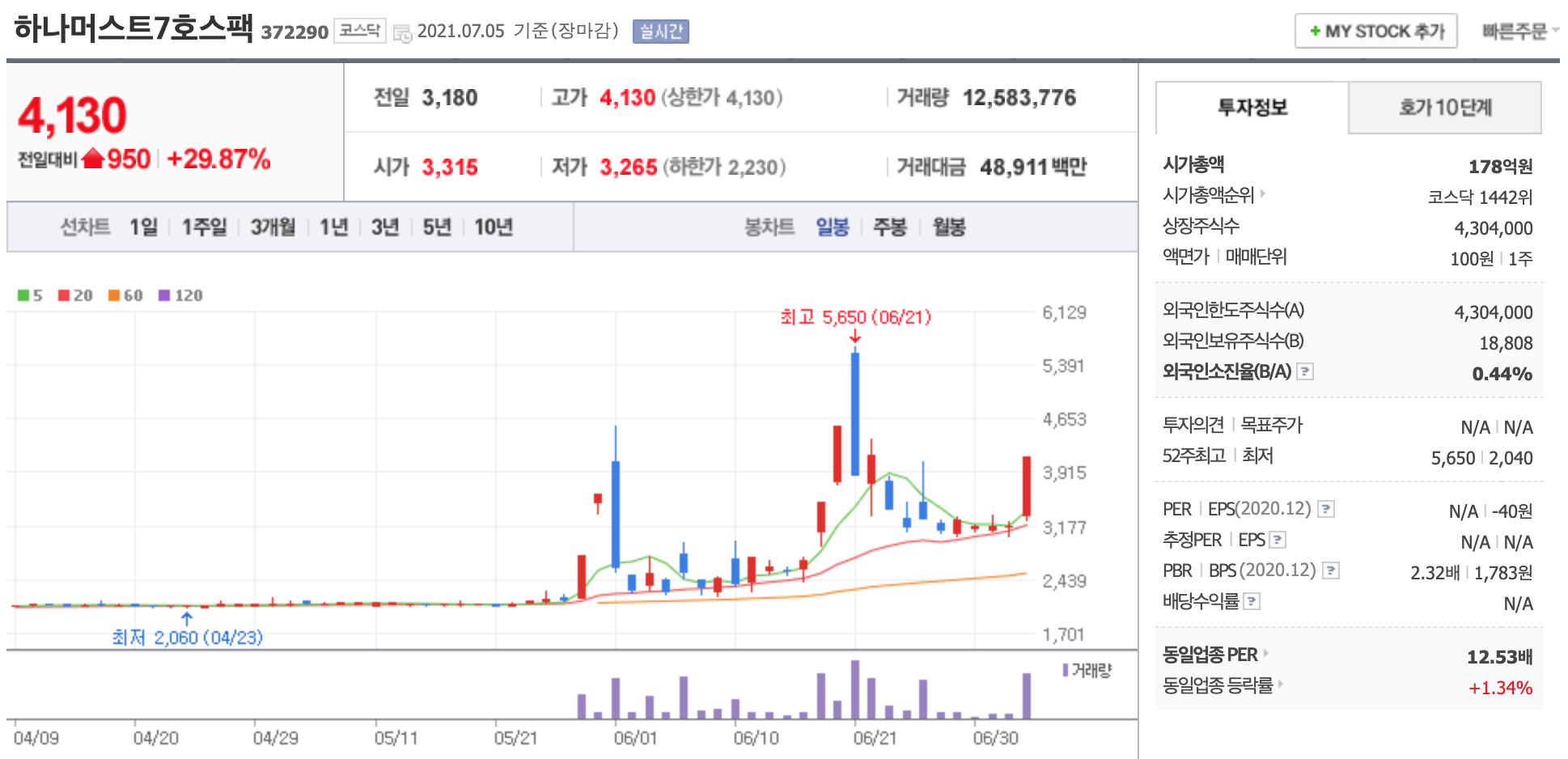 하나머스트7호스팩 29% 상승 '스팩 급등주 감시'