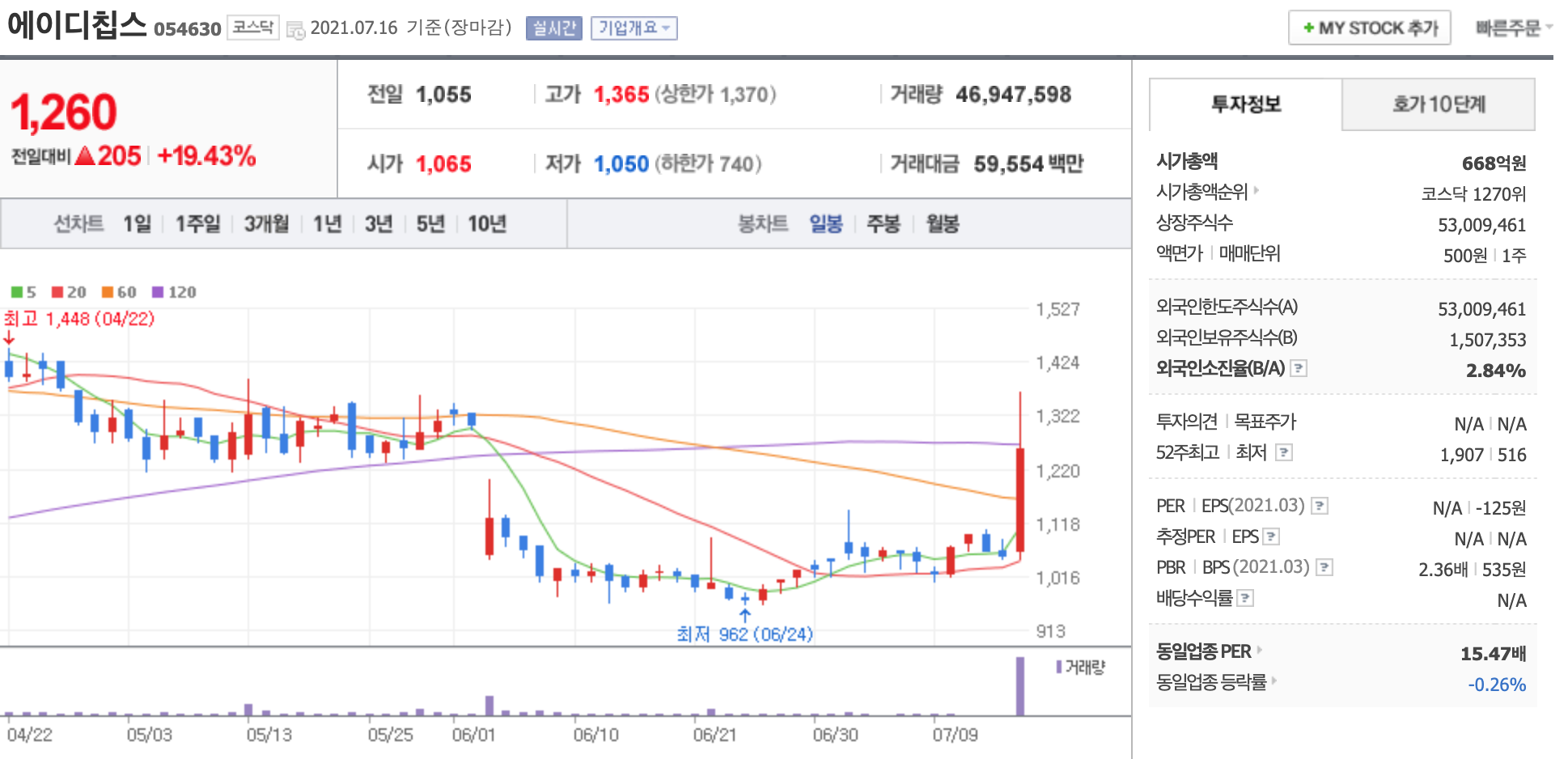 오늘의 상한가 종목 (2021.07.15) (8) | 2021.07.16 |
