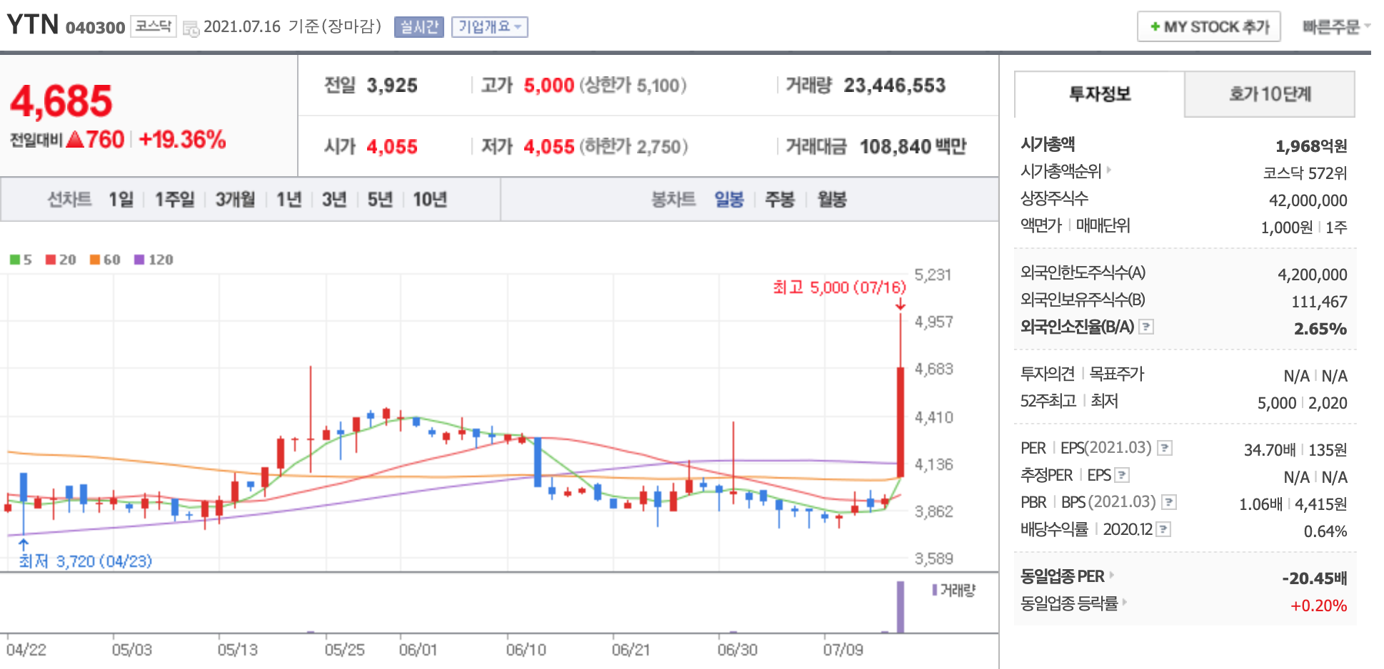 거래소 “YTN 현저한 시황변동 조회공시 요구”