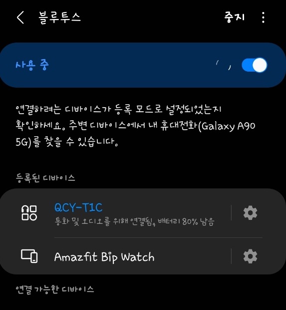 1. 블루투스 설정에 들어가서 QCY-T1을 연결 해제한다.