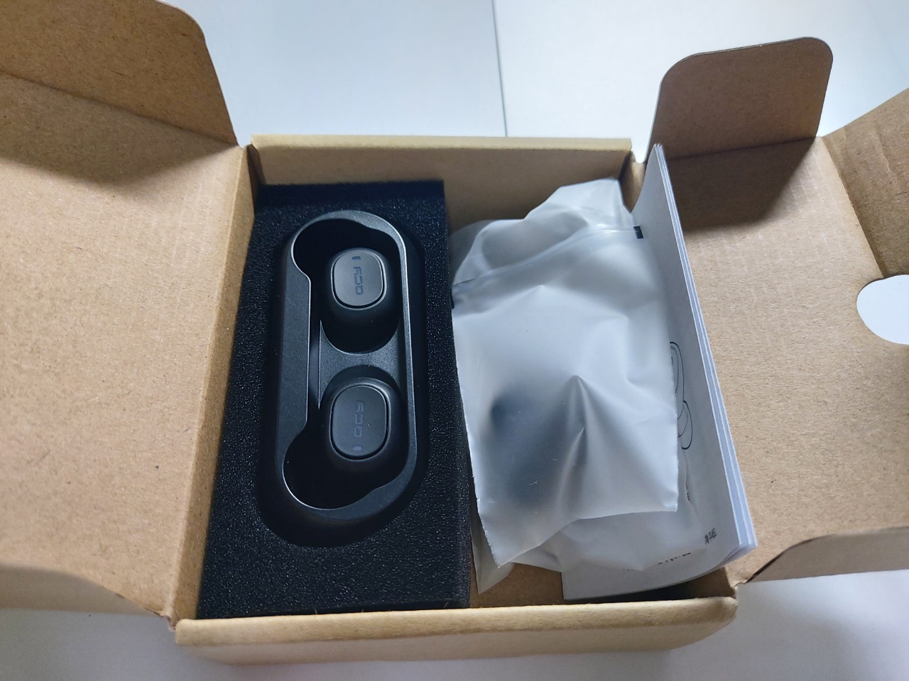 상자를 열어 보니 이렇게 앙증 맞은 QCY-T1이 들어있습니다. 👍🏻