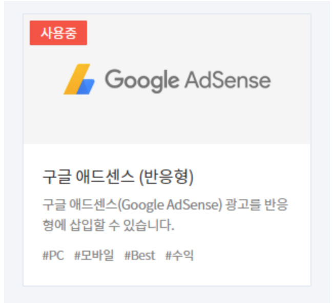 그럼 '구글 애드센스 (반응형)' 이라는 항목이 있을텐데요. 눌러 줍니다.