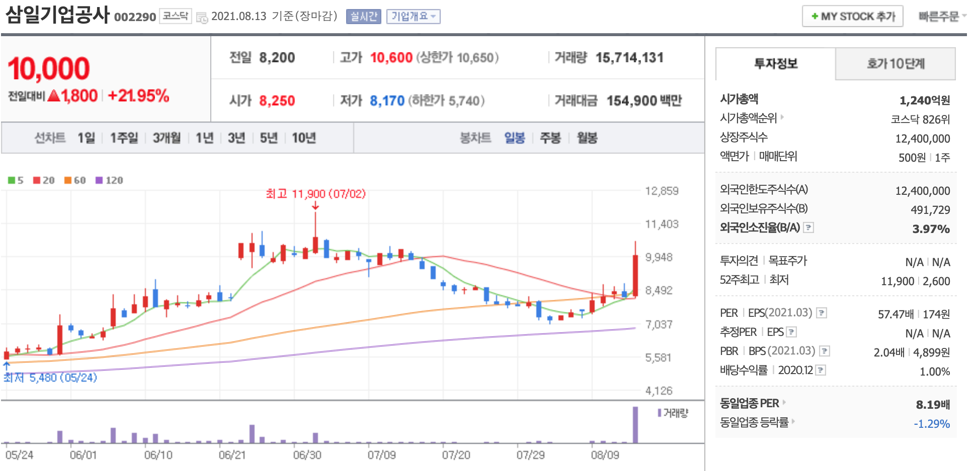 상한가 종목과 관련기사입니다. 🐜🐜출처 - 네이버 증권