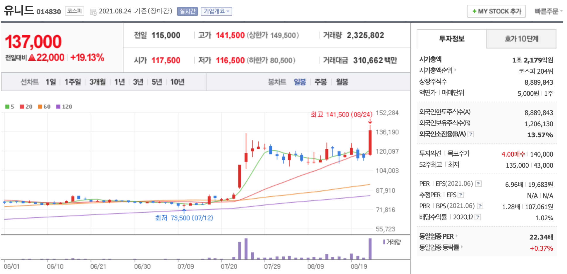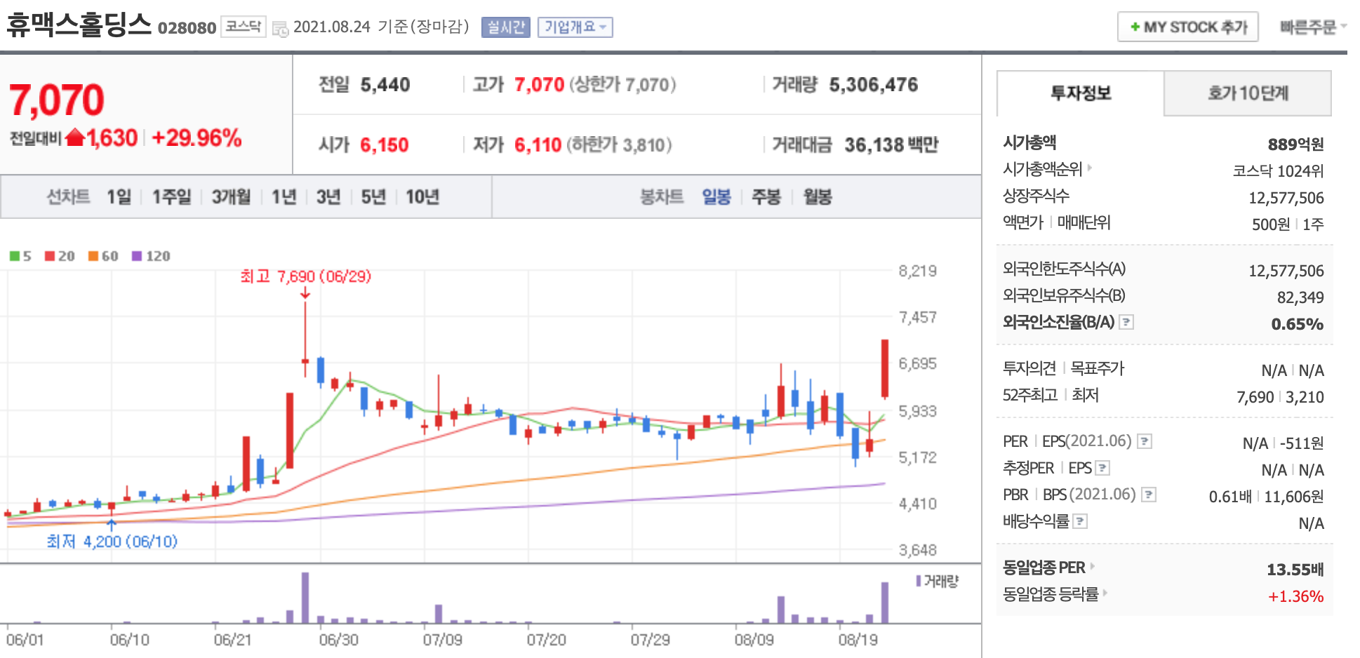상한가 종목과 관련기사입니다. 🐜🐜출처 - 네이버 증권
