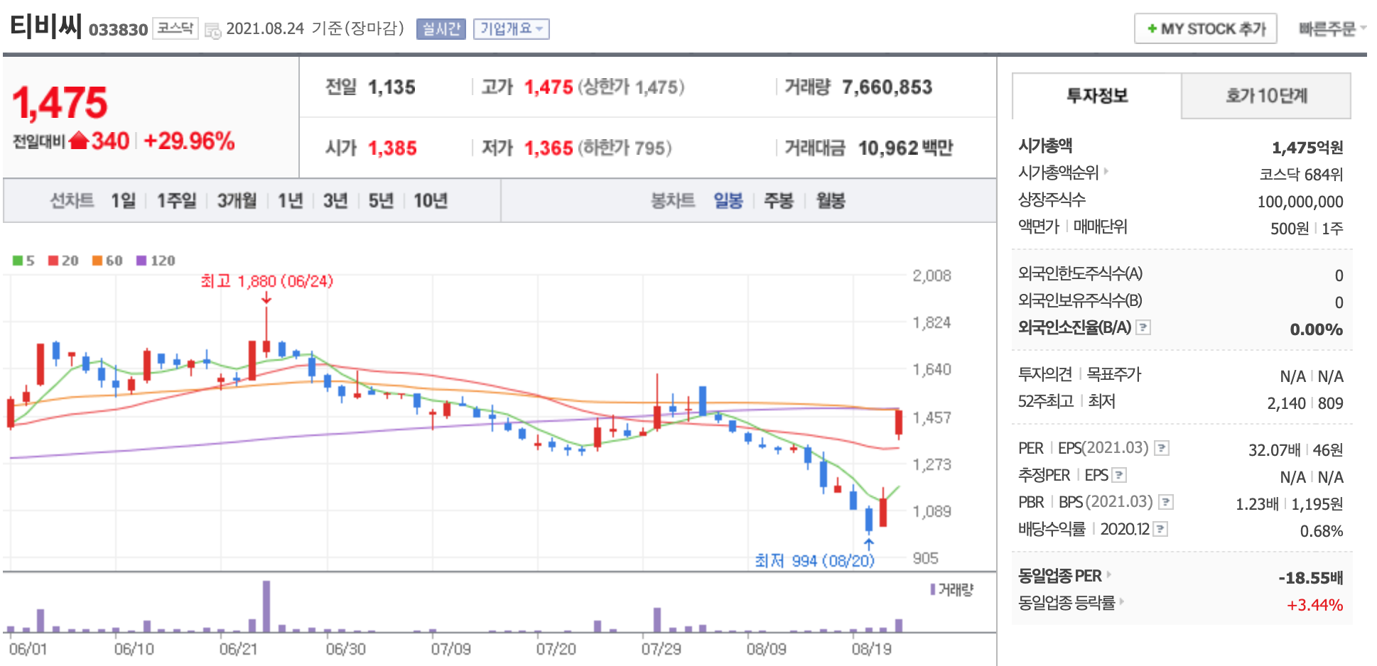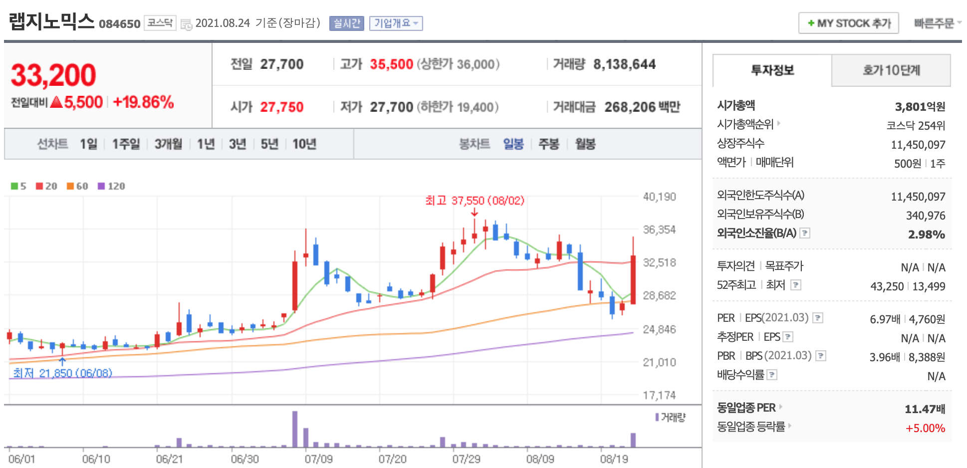| 오늘의 상한가 종목 (2021.08.25) (10) | 2021.08.25 |