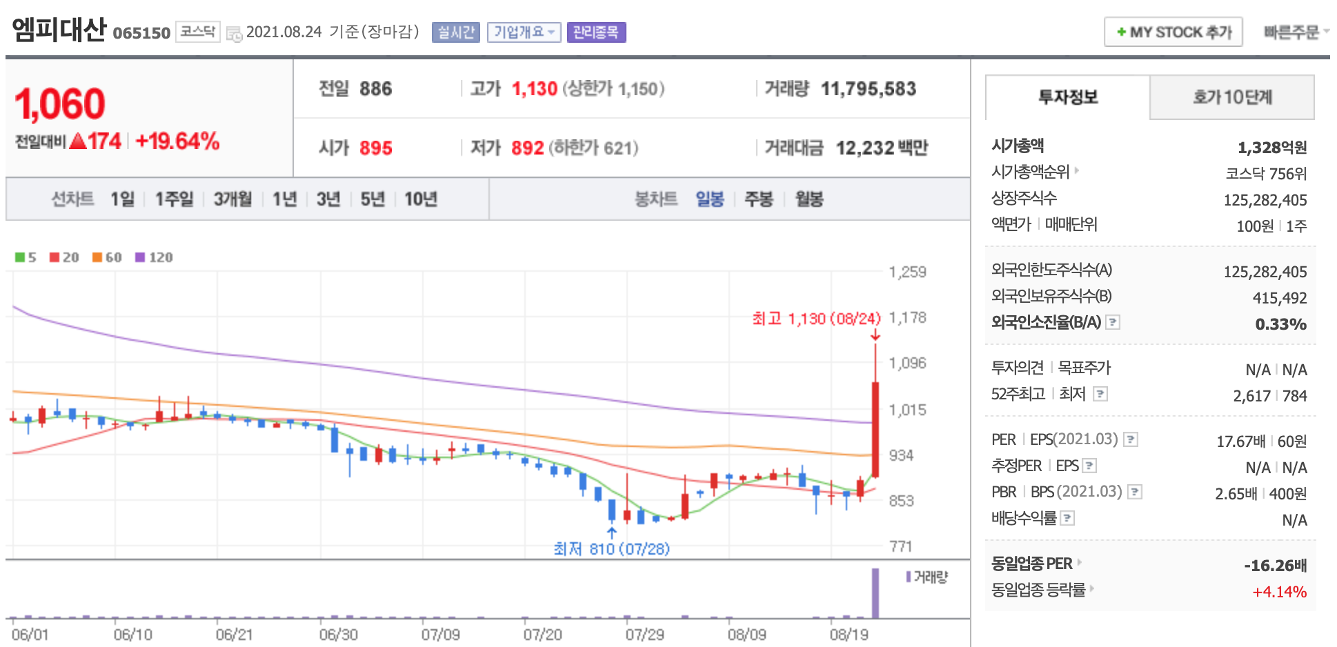 엠피대산 24% 상승 ‘대표이사 변경’ (관리종목)