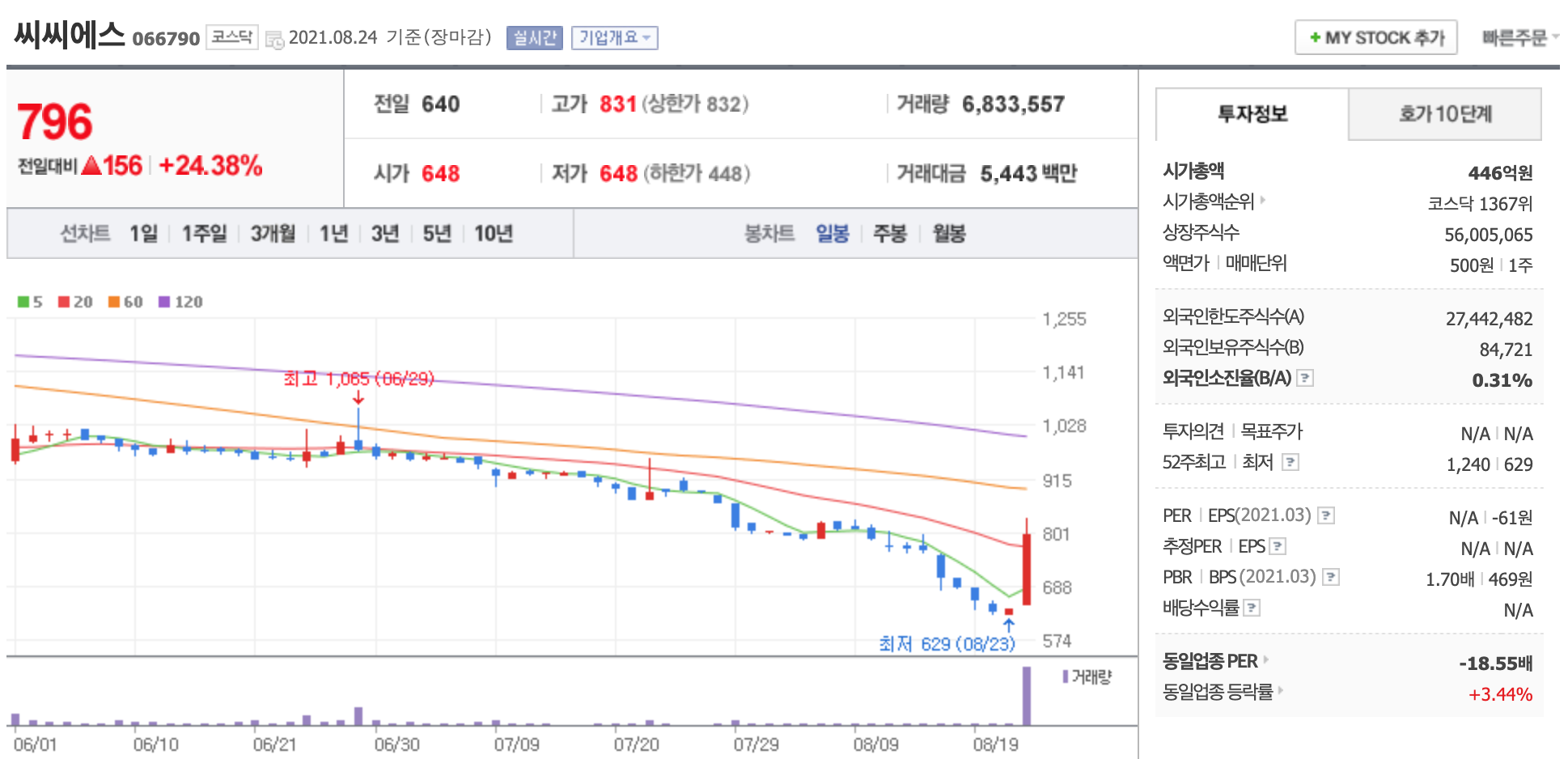 씨씨에스 주가가 급등세로 나타나고 있다.
