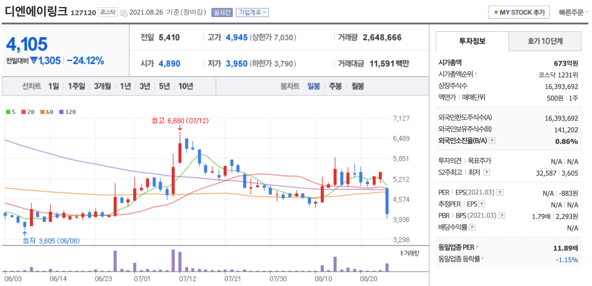 디엔에이링크 24%대 급락...불성실 공시법인 지정예고 영향