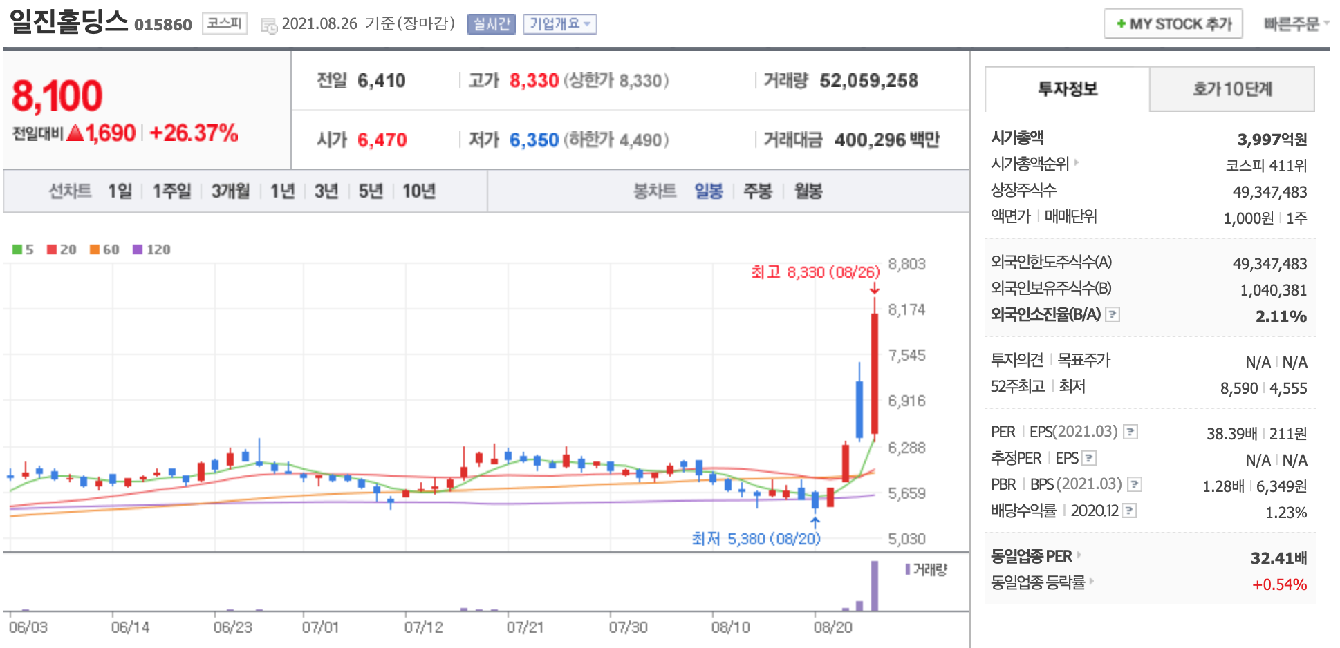 일진홀딩스 주가 26%↑…일진하이솔루스 때문?