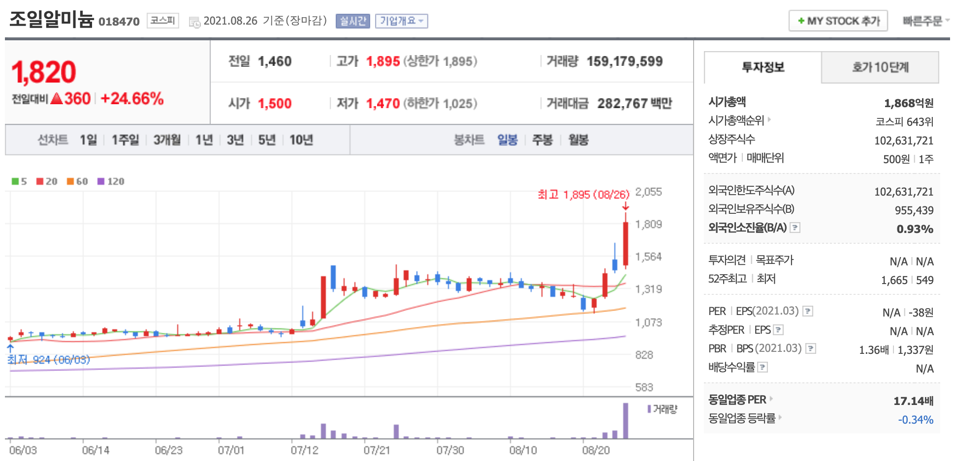 조일알미늄 - 1975년 2월 설립되어 1988년 11월 유가증권시장에 상장되었음.