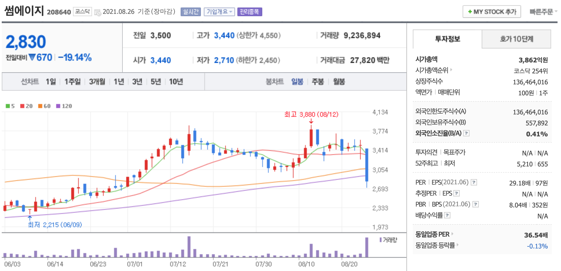 상한가 종목과 관련기사입니다. 🐜🐜출처 - 네이버 증권
