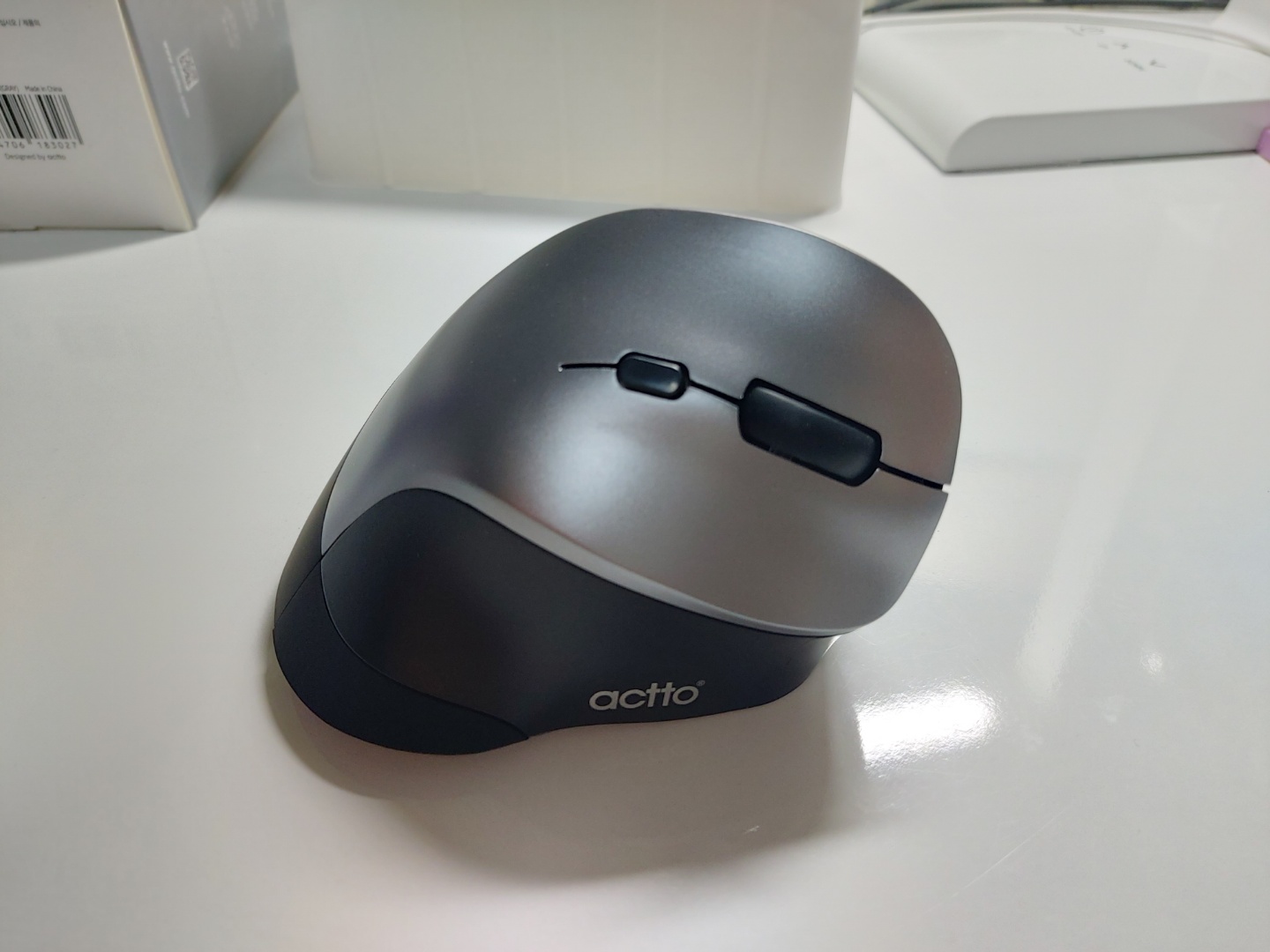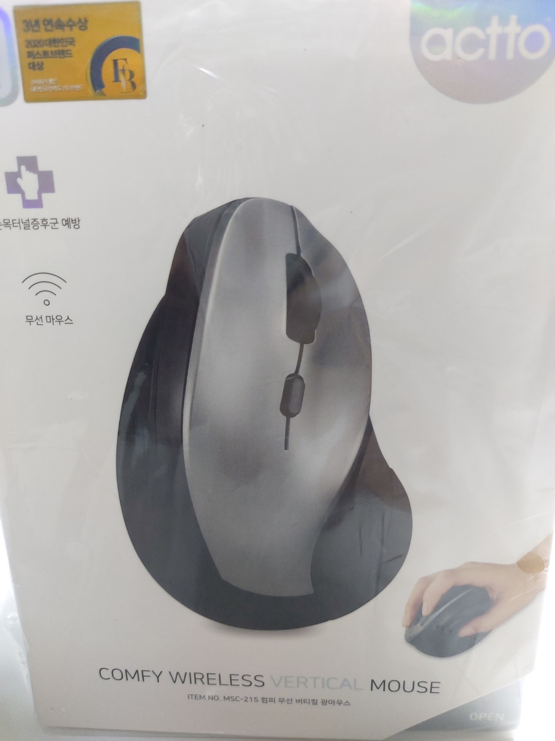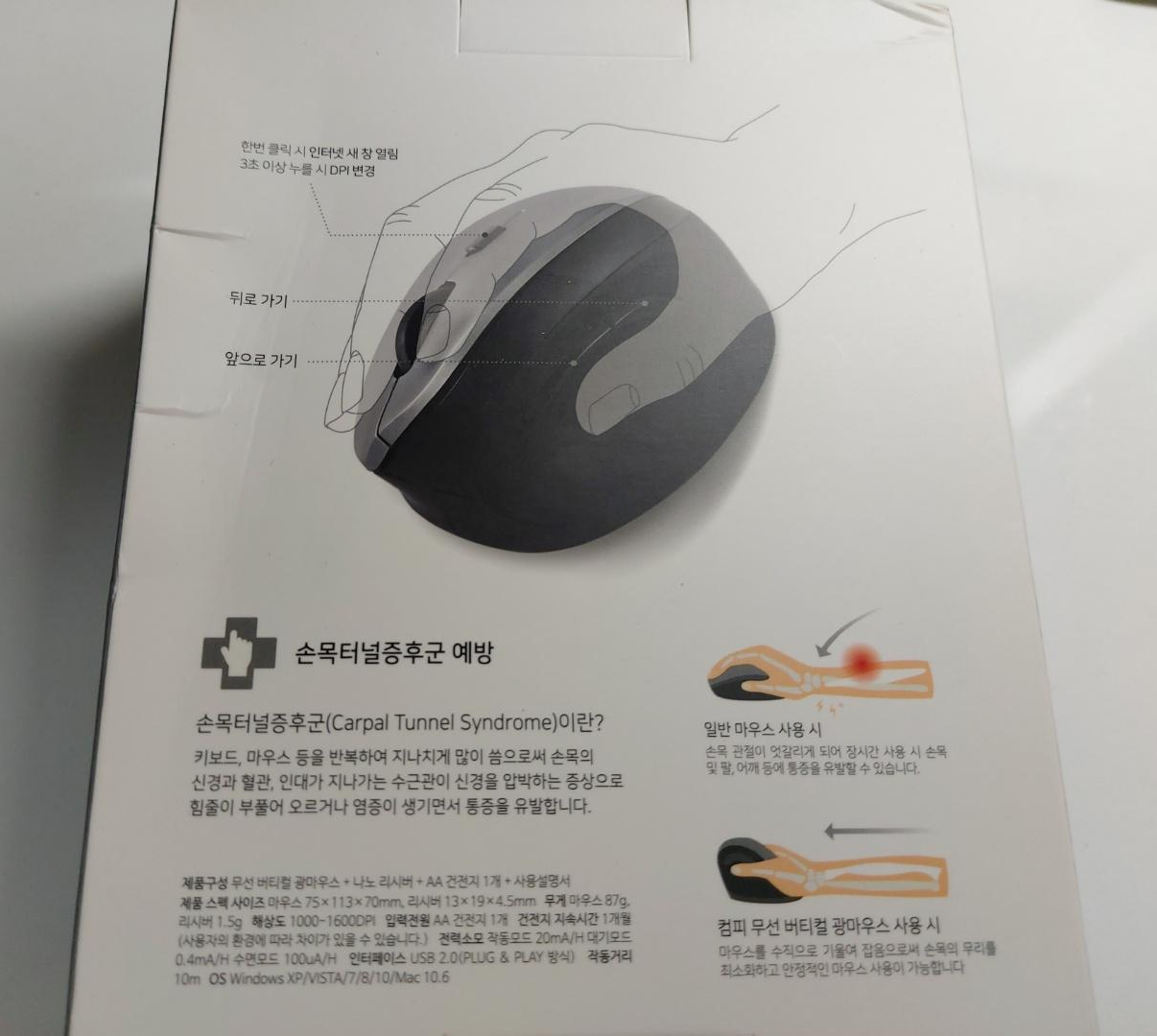 그러던 때에 손목에 무리가 없다는 버티컬 마우스를 알게되었고 바로 구매를 했습니다.