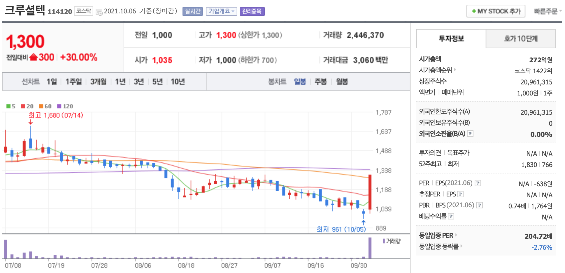 상한가 종목과 관련기사입니다. 🐜🐜출처 - 네이버 증권