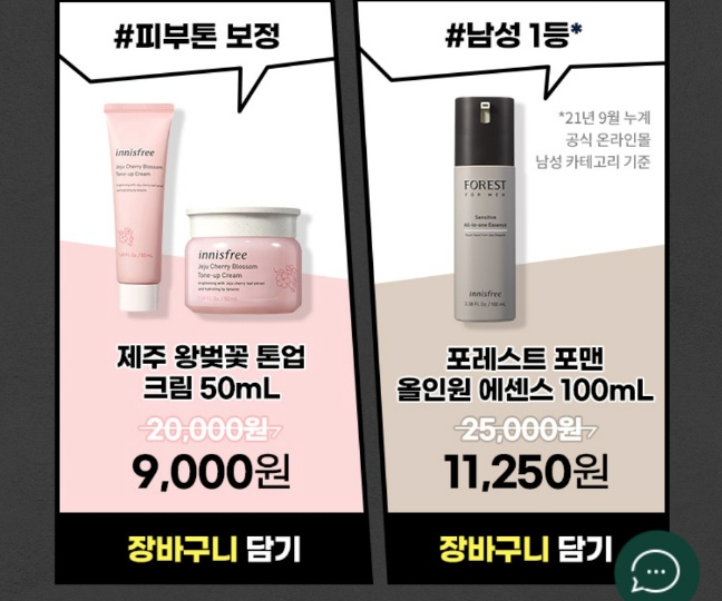 피부톤 보정 -> 제주 왕벚꽃 톤 업 그림 50ml (20,000원 -> 9,000원)