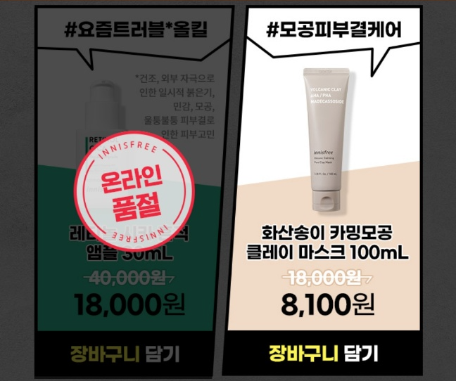요즘 트러블 올킬 -> 레티놀 시카 흔적 앰플 30ml (40,000원 -> 18,000원)