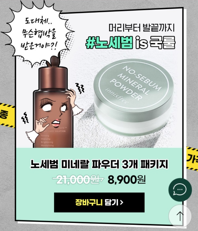 시민 인터뷰 1위 국민 템 네고! 노세범 미네랄 파우더 3개 8,900원!