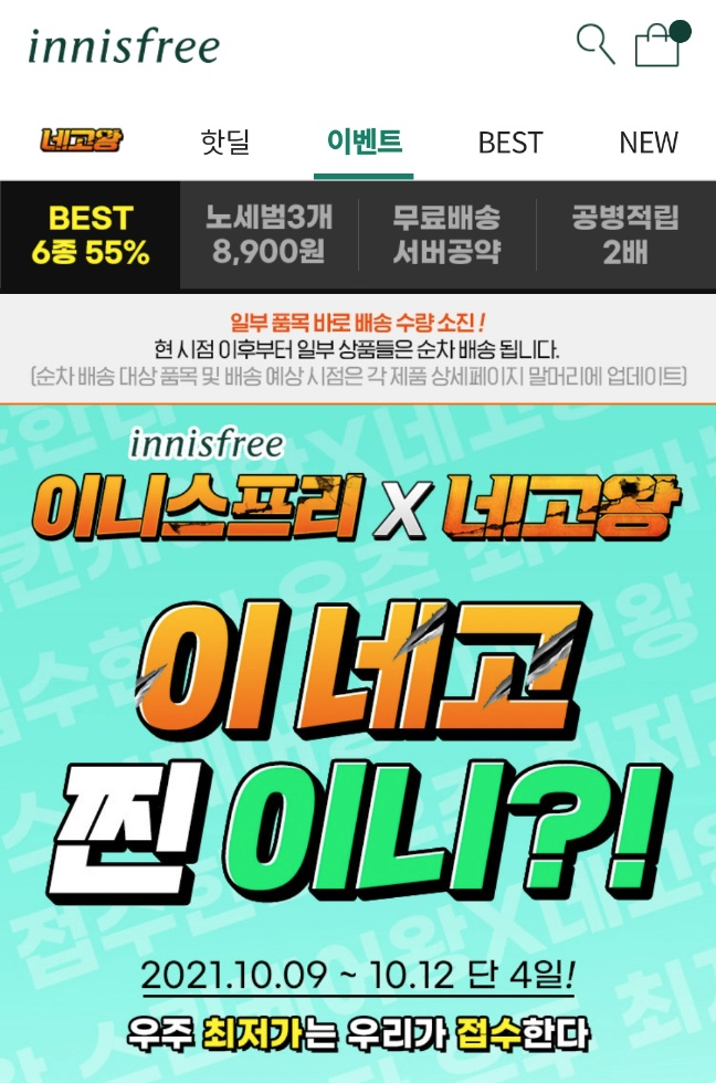 이니스프리의 통 큰 네고가 보이네요.👍🏻